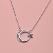 Mavi Zirkon Taşlı Ay Yıldız Kadın Kolye Çelik Takı Aksesuar Gri