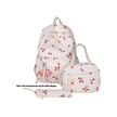 Maxaccess 3 Parça Kiraz Desenli Sırt Çantası + El Çantası + Kalem Kutusu Krem Beyaz