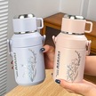 Maxaccess Mavi Çiçek Desenli 27.05 Oz Paslanmaz Çelik Seyahat Termosu Kapaklı Kulplu