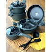 Maya Döküm Tencere Seti Haki Yeşil 9 Parça Haki