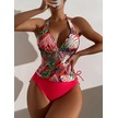 Mayo Kadın Bölünmüş Üçgen Dantel Katı Yaprak Baskılı Bikini Mayo Kırmızı