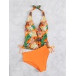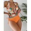 Mayo Kadın Bölünmüş Üçgen Dantel Katı Yaprak Baskılı Bikini Mayo Turuncu
