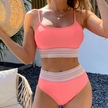Mayo Kadın Halter Boyun Bölünmüş Üçgen Yüksek Bel Düz Renk Sling Bikini Setleri Turuncu