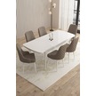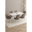 Mazaka Beyaz 80x132 Açılabilir Mdf Masa Yemek Odası Takımı, Mutfak Takımı 6 Adet Sandalye Cappucino