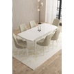 Mazaka Beyaz 80x132 Açılabilir Mdf Masa Yemek Odası Takımı, Mutfak Takımı 6 Adet Sandalye Krem