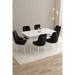 Mazaka Beyaz 80x132 Açılabilir Mdf Masa Yemek Odası Takımı, Mutfak Takımı 6 Adet Sandalye Siyah