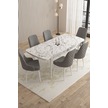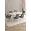 Mazaka Beyaz Mermer 80x132açılabilir Mdf Masa Yemek Odası Takımı,mutfak Takımı 6 Adet Sandalye Gri