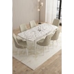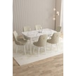 Mazaka Beyaz Mermer 80x132açılabilir Mdf Masa Yemek Odası Takımı,mutfak Takımı 6 Adet Sandalye Krem