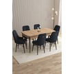 Mazaka Meşe Desen 80x132 Açılabilir Mdf Masa Yemek Odası Takımı, Mutfak Takımı 6 Adet Sandalye Antrasit