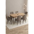Mazaka Meşe Desen 80x132 Açılabilir Mdf Masa Yemek Odası Takımı, Mutfak Takımı 6 Adet Sandalye Cappucino