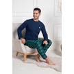 Mecit 3051 Erkek Lacivert Ekoseli Büyük Beden Pijama Takımı Lacivert