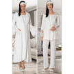 Mecit 5355 Ekru Lohusa Sabahlık Pijama Gecelik Takım