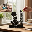 Meditasyon Yapan Kedi Ve Kuş Tasarımlı Dekoratif Metal Telefon Standı