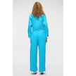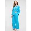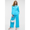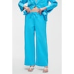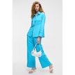 Melancholı Kadın %100 Pamuk Keten Görünüm Flamlı Geniş Paça Yüksek Bel Lastikli Turkuaz Pantolon