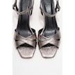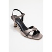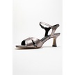 Melin Platin Desenli Çapraz Bantlı Kadın Topuklu Ayakkabı Platin