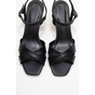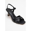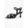 Melin Siyah Cilt Çapraz Bantlı Kadın Topuklu Ayakkabı Siyah
