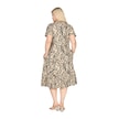 Melsay Butik Göğüsten Robalı V Yaka Kısa Kollu Bej Yaprak Desen Cepli Elbise Krem