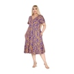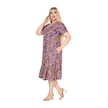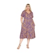 Melsay Butik Göğüsten Robalı V Yaka Kısa Kollu Mor Yaprak Desen Cepli Elbise Mor