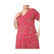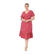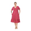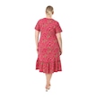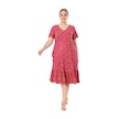 Melsay Butik Göğüsten Robalı V Yaka Kısa Kollu Pembe Çiçek Desenli Cepli Elbise Pembe