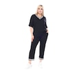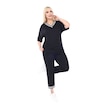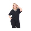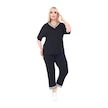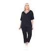 Melsay Butik Siyah V Yaka Şerit Detaylı Kısa Kollu Beli Lastikli Kapri Takım Siyah