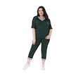 Melsay Butik Zümrüt Yeşil V Yaka Şerit Detaylı Kısa Kollu Beli Lastikli Kapri Takım Yeşil