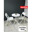 Mercan 2 Kişilik Yuvarlak Mutfak Yemek Masası Takımı 2+1 Beyaz Deri 60 Cm Beyaz 2'li