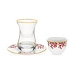 Mercan Kırmızı 18 Parça Çay + Mırra Set Hediye Kutulu Beyaz - Mavi