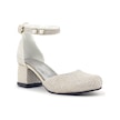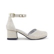 Merida Gold Simli Kalın Topuklu İnci Detaylı Kız Çocuk Topuklu Ayakkabı Altın