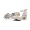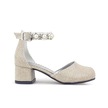 Merida Gold Simli Kalın Topuklu Taşlı Kız Çocuk Topuklu Ayakkabı Altın