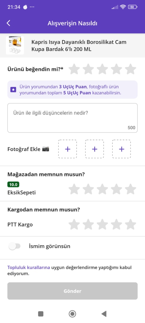 24 Değerlendirme 📷Bu mağazayı takip et, 50 TL indirim kuponu kazan.