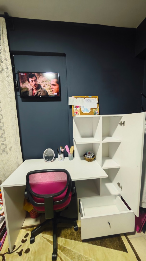 Merlin Mobilya Minör Çalışma Masası Ve 7 Bölmeli Kitaplık Beyaz
