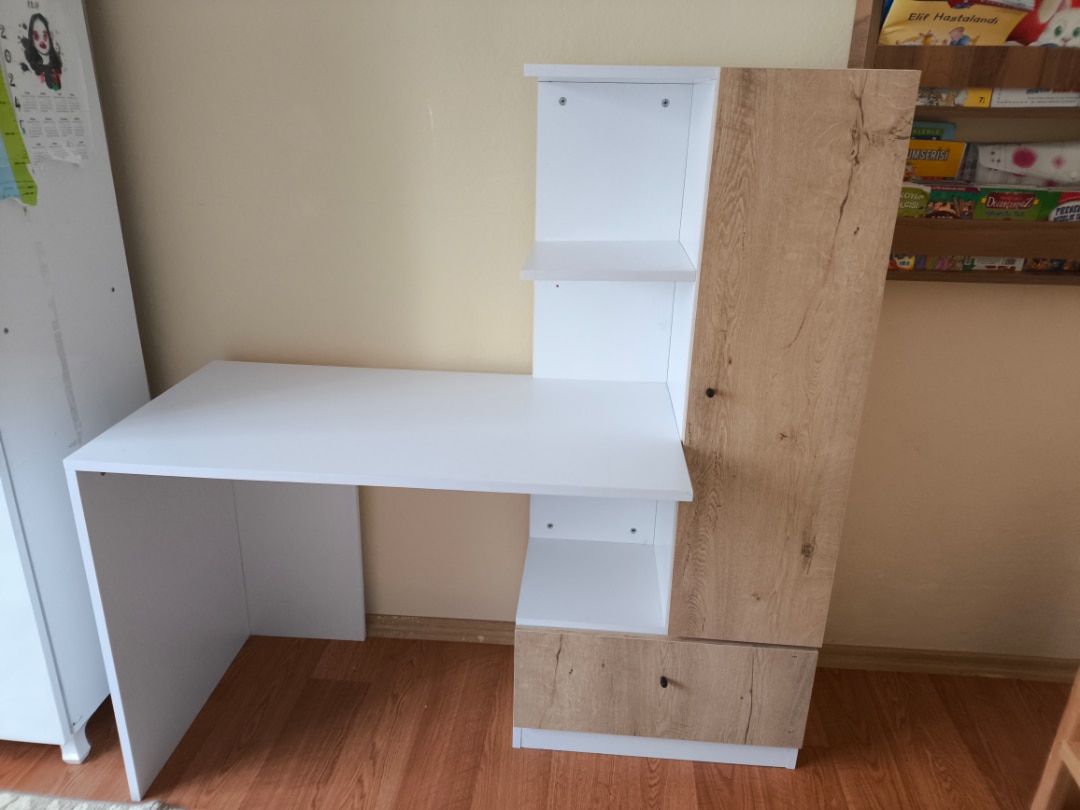 Merlin Mobilya Minör Çalışma Masası Ve 7 Bölmeli Kitaplık Meşe Beyaz - Meşe