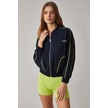 MERLYAN Kadın Bomber Yaka Oversize Fermuarlı Lacivert Ceket