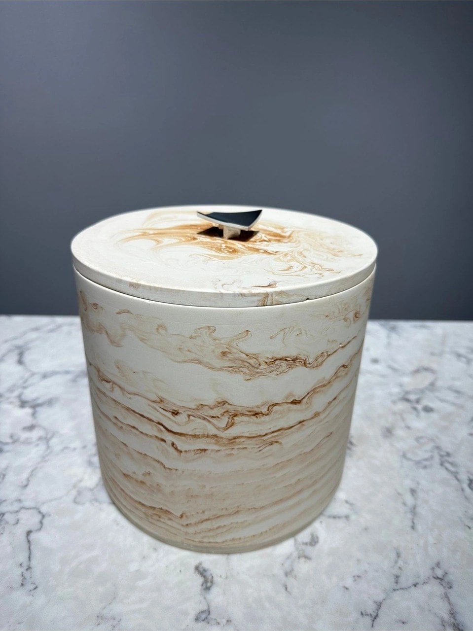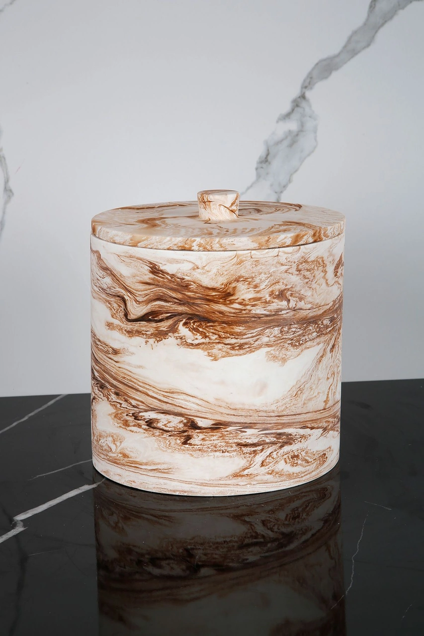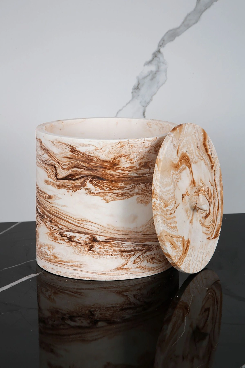 Mermer Desenli Beton Çöp Kovası Banyo Mutfak Tuvalet Wc 18 Cm 4 Litre Bej