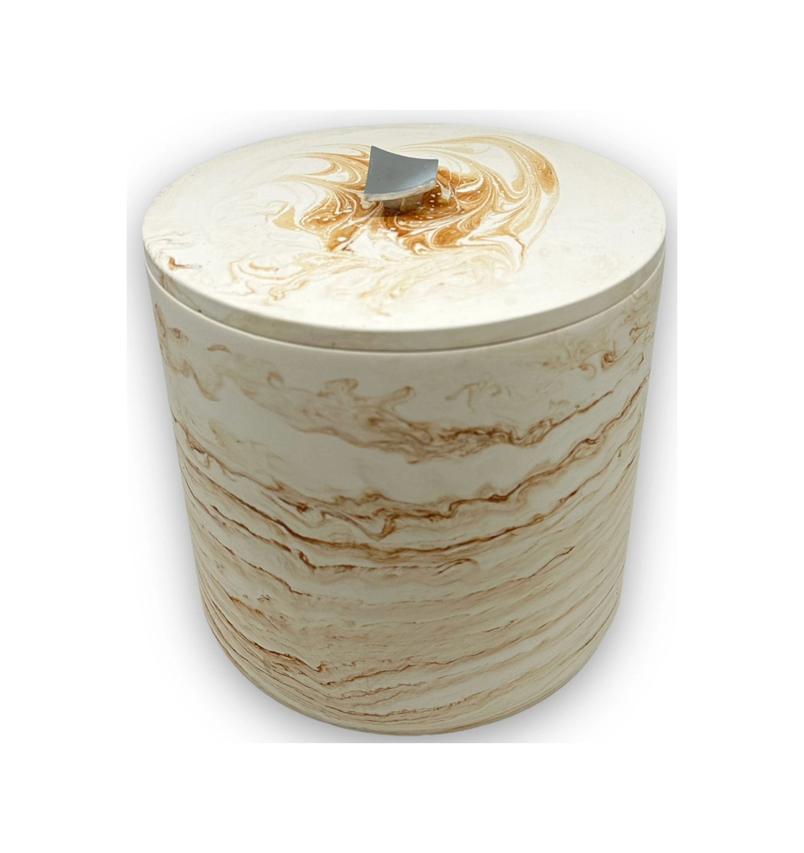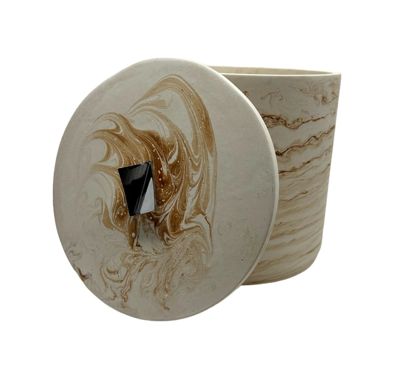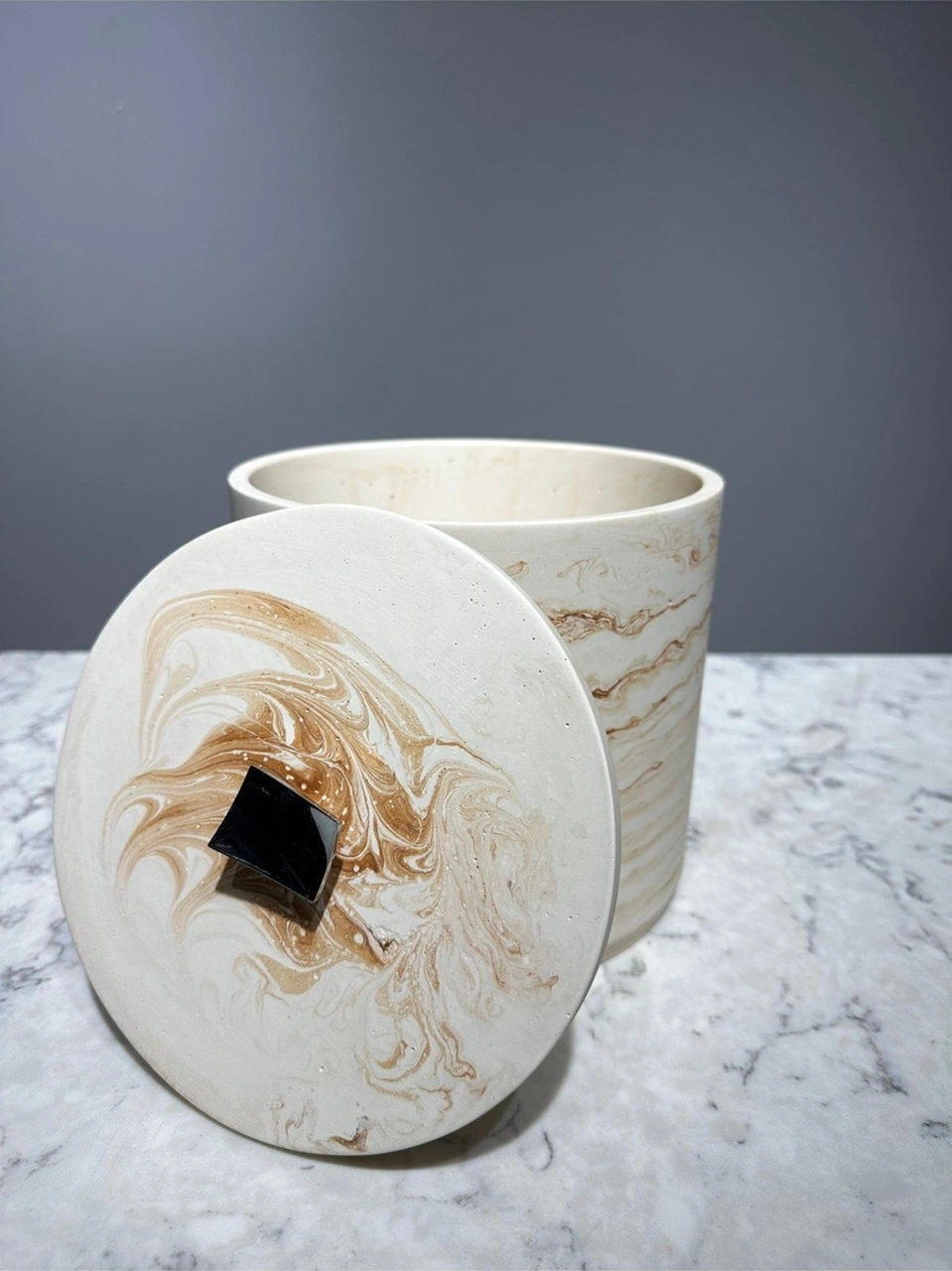 Mermer Desenli Beton Çöp Kovası Banyo Mutfak Tuvalet Wc 18 Cm 4 Litre Bej