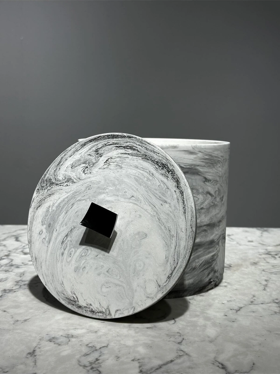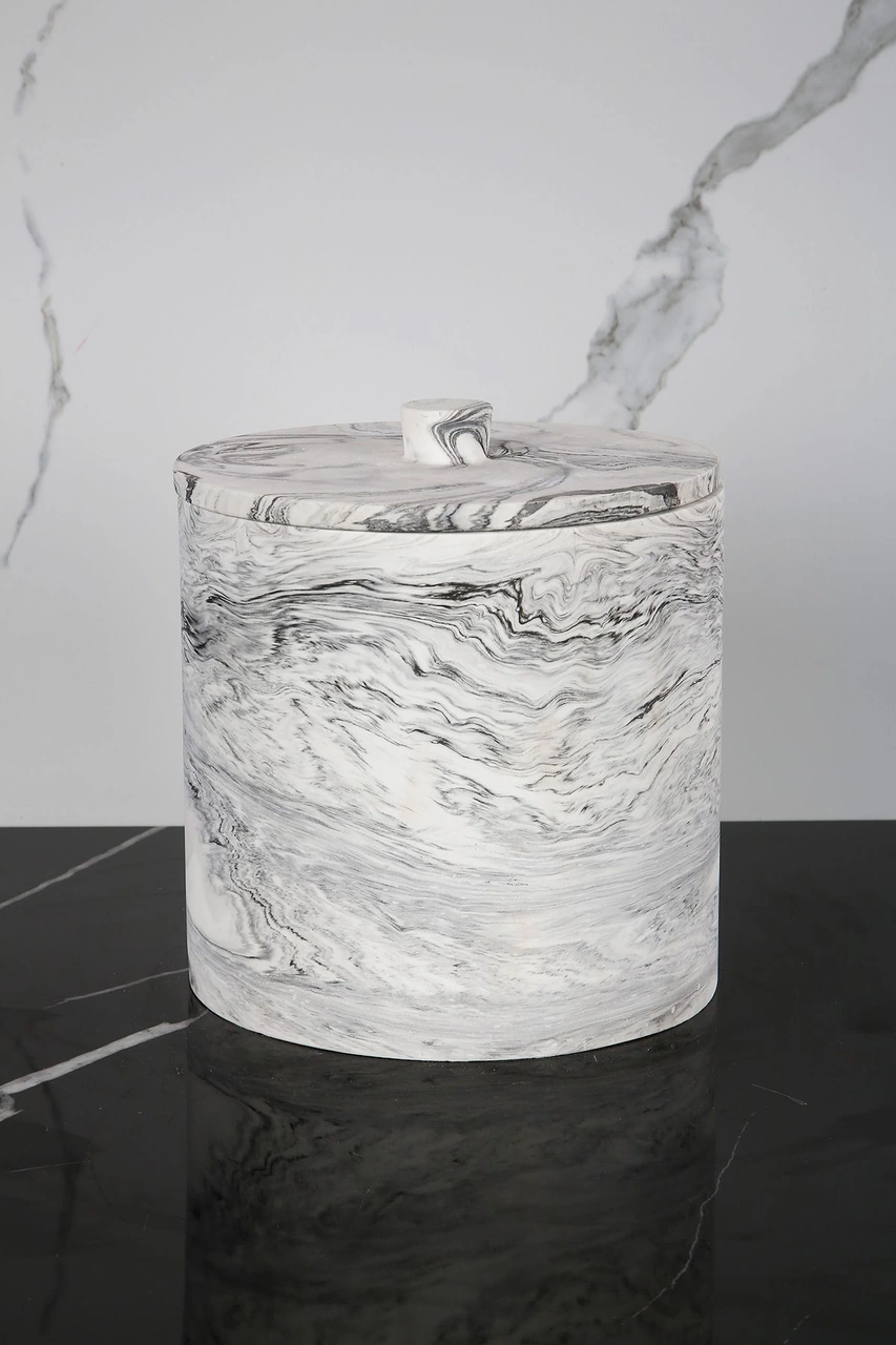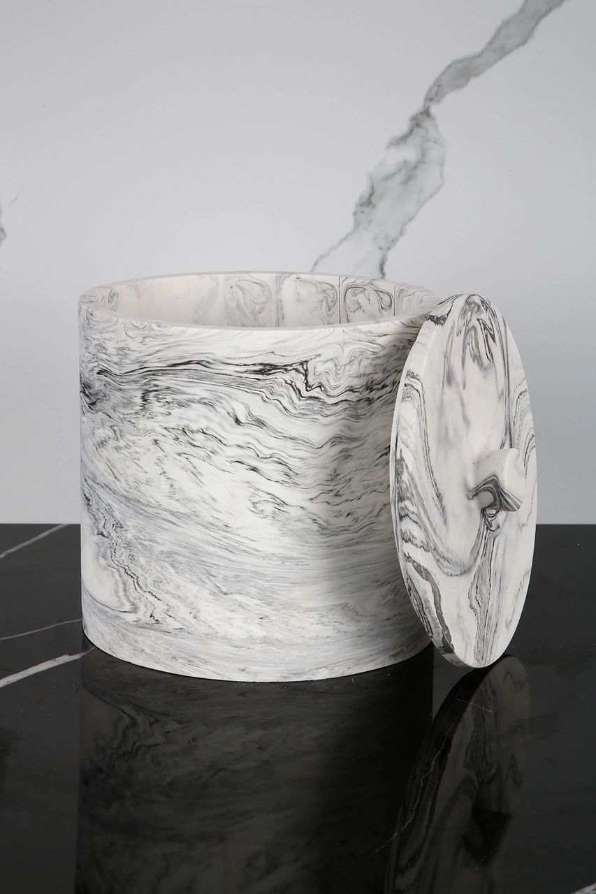 Mermer Desenli Beton Çöp Kovası Banyo Mutfak Tuvalet Wc 18 Cm 4 Litre Gri
