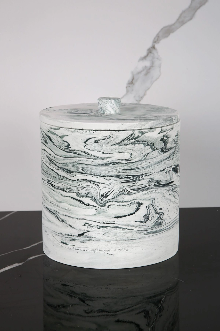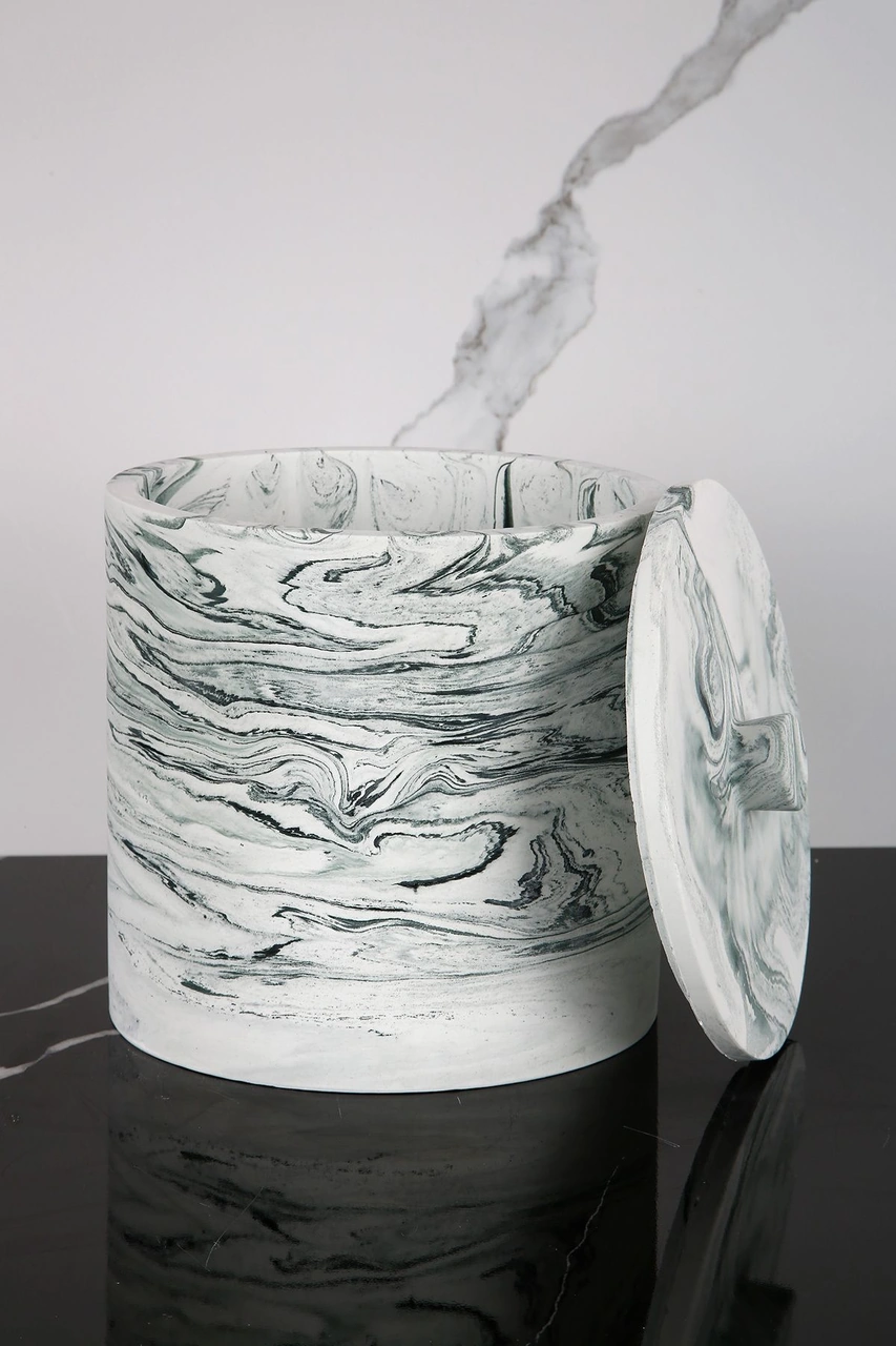Mermer Desenli Beton Çöp Kovası Banyo Mutfak Tuvalet Wc 18 Cm 4 Litre Yeşil