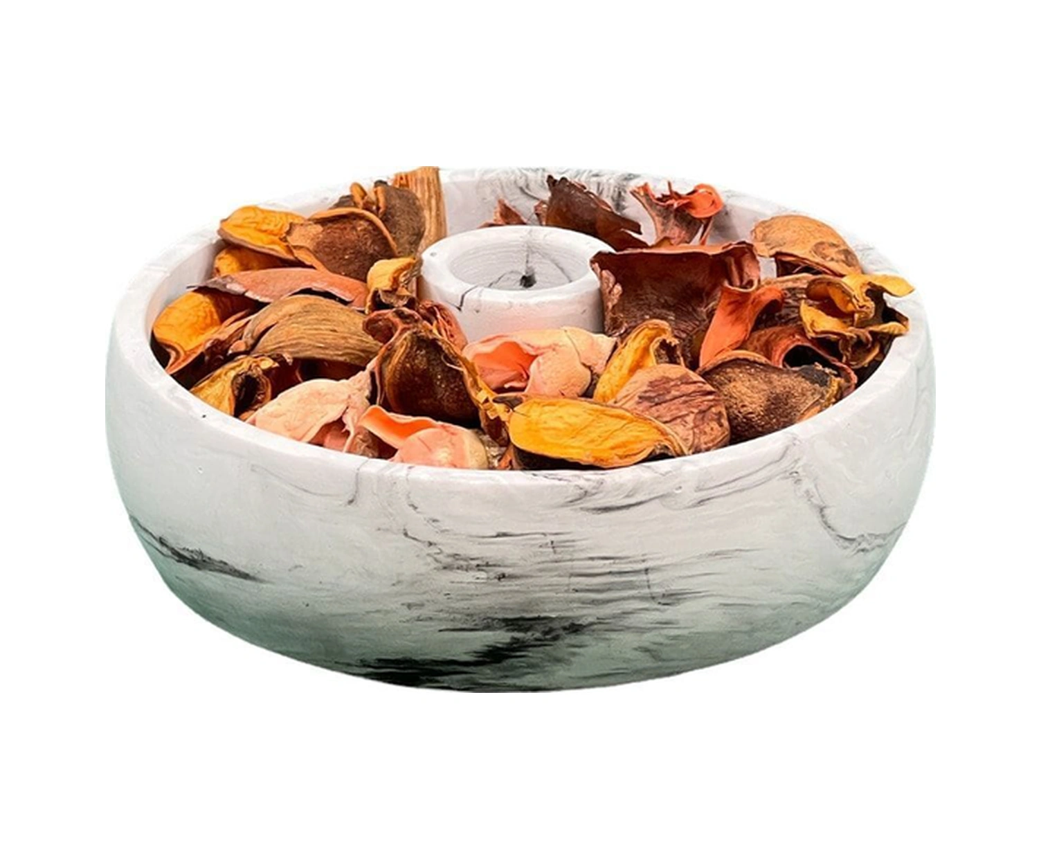 Mermer Desenli Beton Mumluk Şamdan Bej-gri