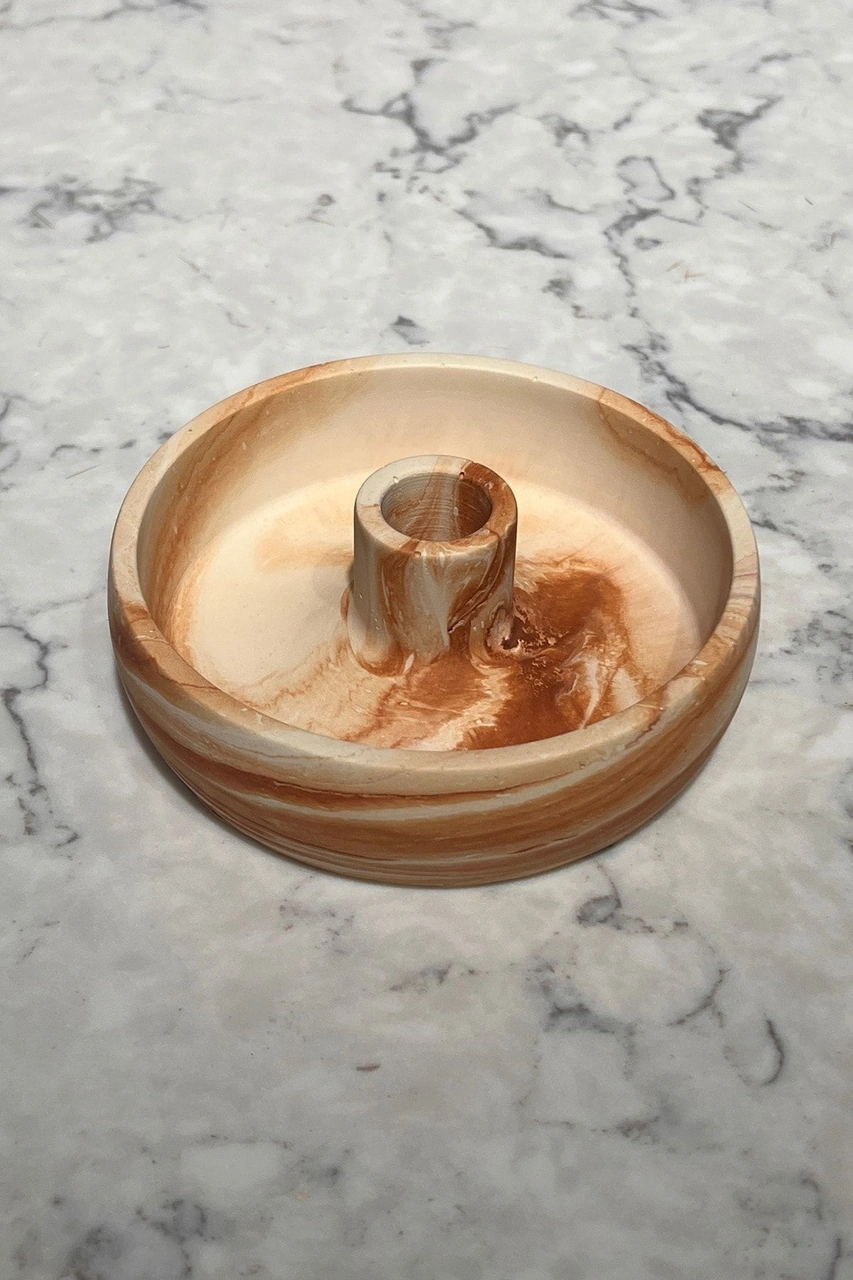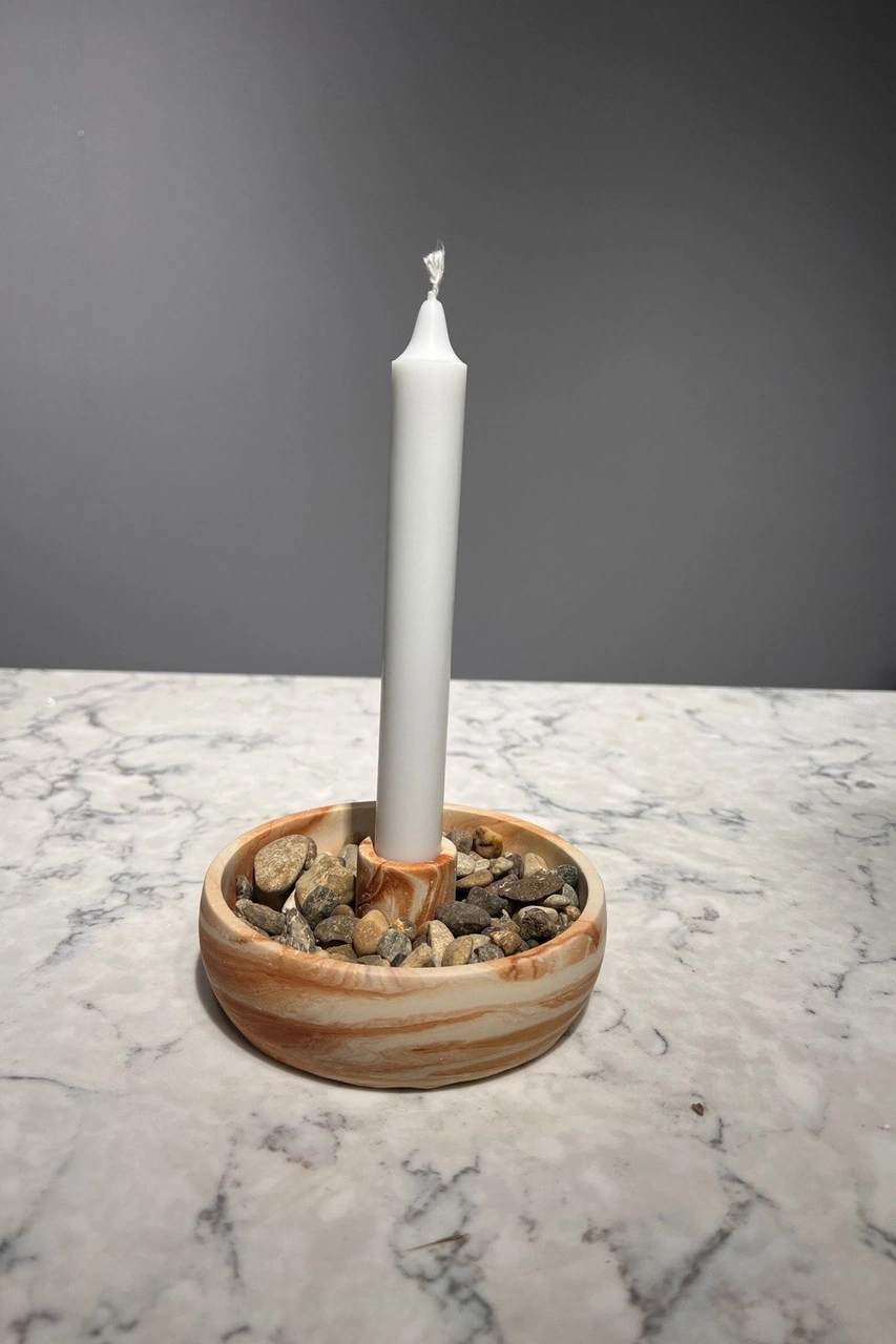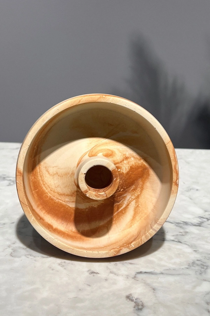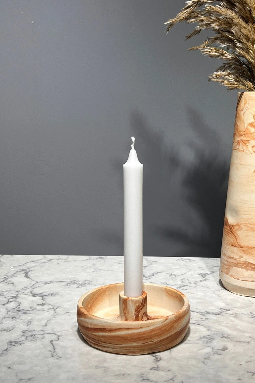 Mermer Desenli Beton Mumluk Şamdan Kahverengi