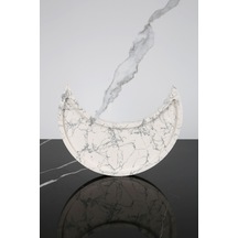 Mermer Desenli Beton Sunum Tepsisi Hilal Şeklinde Servis Sunum Tabağı Sunumluk