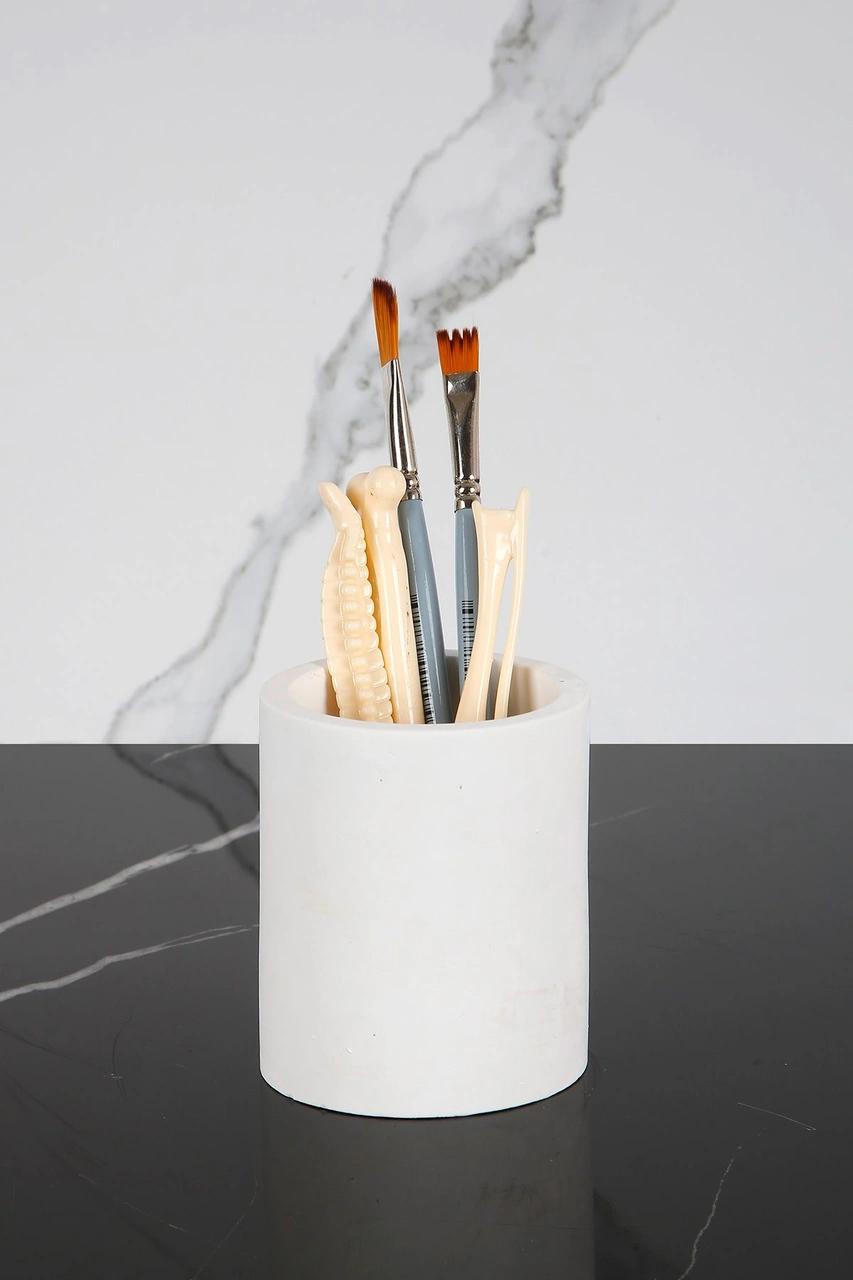 Mermer Desenli El Yapımı Beton Diş Fırçalık Banyo Tuvalet Diş Fırçalığı Beyaz
