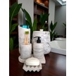 Mermer Serisi Beton Banyo Seti,çöp Kovasi,tuvalet Fırçası Takimı,tepsi,sıvı Ve Katı Sabunluk, Gri