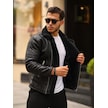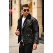 Mero Life Napa Deri İçi Full Kürklü Yüksek Kalite Slim Fit Erkek Mont - Siyah