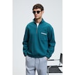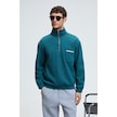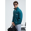 MERRICK Erkek Sırt Baskılı Cebi Nakışlı Yarım Fermuarlı Kolu Lastikli Dik Yaka Regular Fit Yeşil Swe