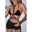 Merry See 3 Parçalı Eldiven Sütyen Crop Takım Siyah