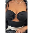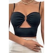 Merry See Aksesuarlı Şık Crop Büstiyer T-shirt Siyah