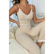 Merry See Askılı Dantel İşlemeli Şık Pijama Takımı Krem