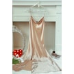 Merry See Degaje Yaka Yırtmaçlı Saten Gecelik Bej