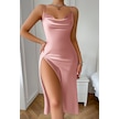 Merry See Degaje Yaka Yırtmaçlı Saten Gecelik Pembe