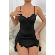 Merry See İki Taraf Yırtmaçlı Askılı Şık Gecelik Siyah